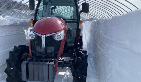 育苗ハウスの除雪を始めました。 今年は2m20cmの雪と格闘です! ロータリーで雪を飛ばしてから炭をまいてなるべくはやく溶けるのを祈ります。。。